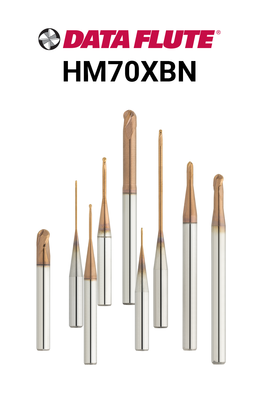 The HM70XBN is an innovative new tool series by Data Flute, meticulously engineered for the milling of hard metals within the 52-70HRC range. It is capable of delivering superior surface finishes of less than 0.2Ra µm (8Ra µin) across a variety of hard metals, significantly reducing the necessity for costly hand-polishing processes post-machining. The ball nose design is ideally suited for machining intricate 3D features typically found in injection molds, blow molds, dies, and other complex contoured machining applications.